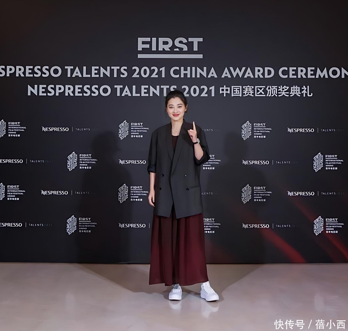 这身穿搭固然莫得拉风的筹算,但举座造型在筹算上检朴洋气,可爱的姐妹果敢模仿。