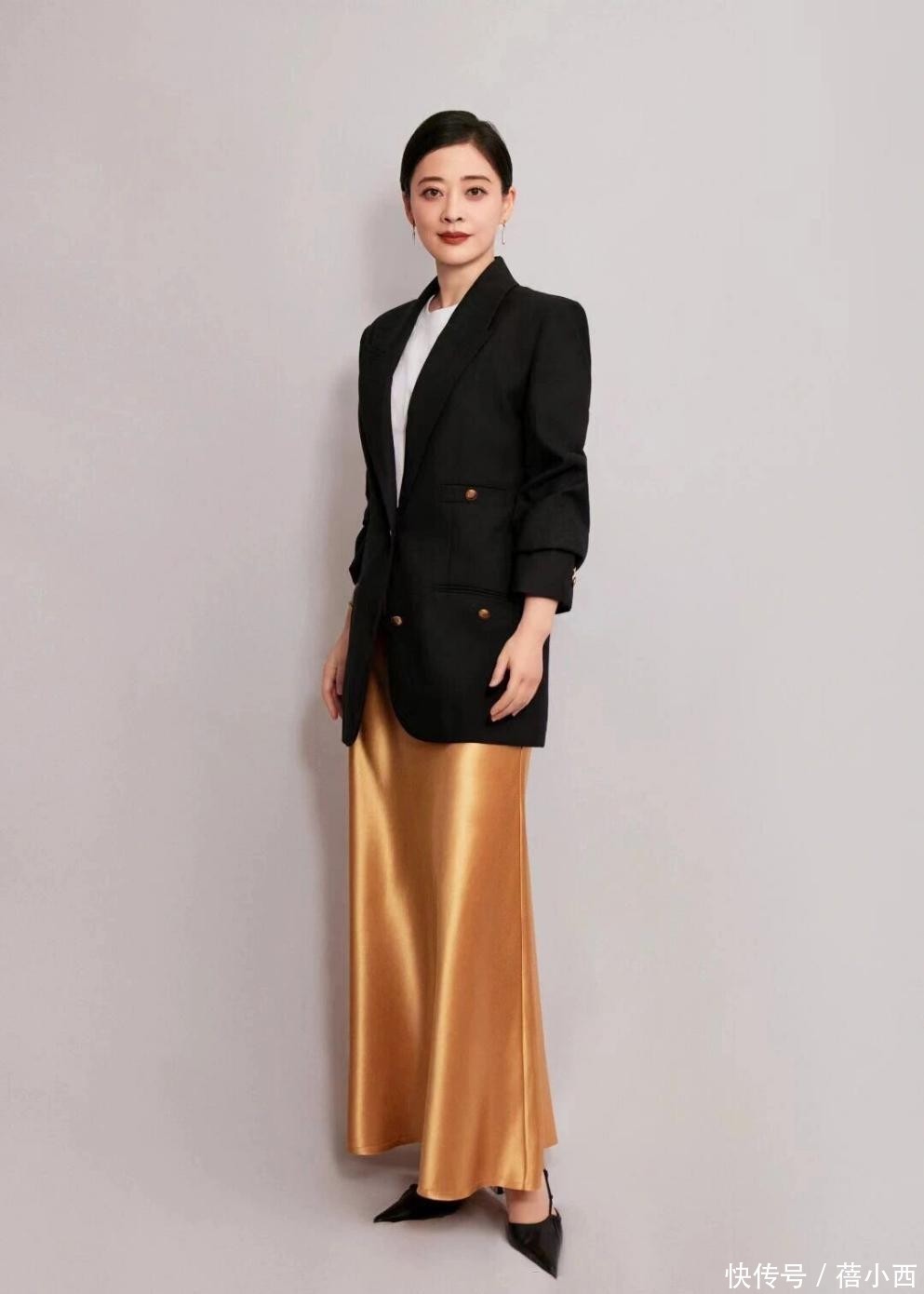 03黑西装+缎面半身裙